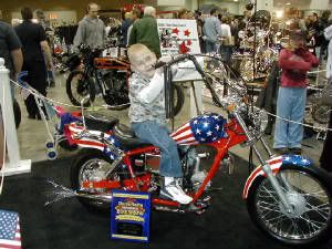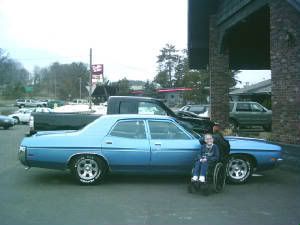 I thought I would post a few pictures of Robert so everyone can see how happy of a kid he is . We all  (The Pharaohs) have tried to make his life as fun and exciting as we can . One of the pictures is Robert and his father Bopper on the Flood run  and yes those are spinner hub caps that we put on his chair he wanted them and what Robert wants he gets. The other is Robet with the chopper we built for him hes at the Donnie smith show where he won first place in his class .  the last is Robert with his LTD that we got for him and tricked out  .
