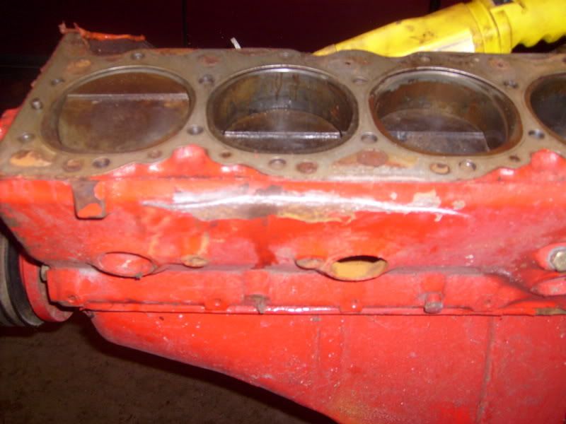 Up date on the 348. :cry:  As I was cleaning up the bores I noticed a huge crack in the block! WTF!
