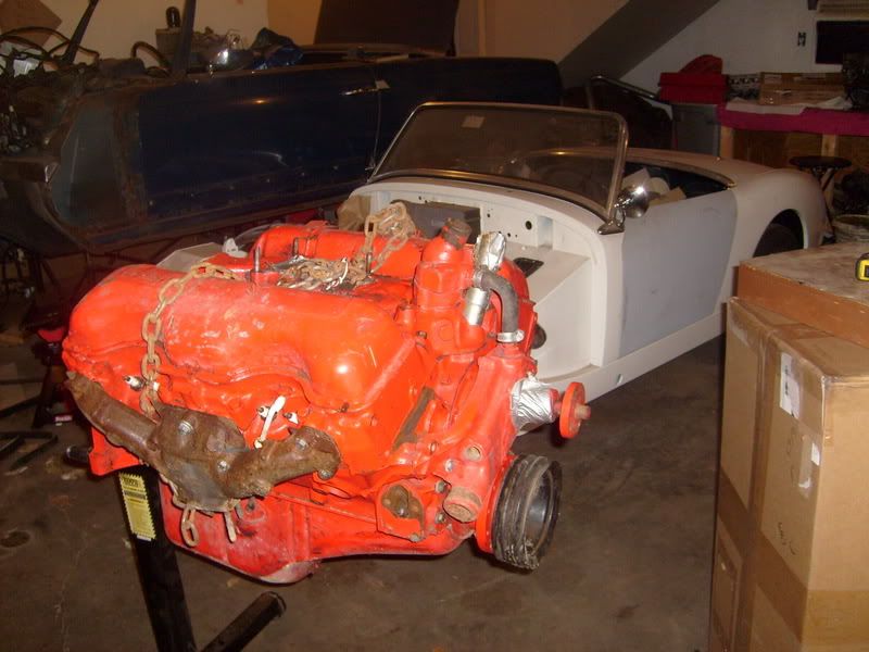 I got this 348 today from an old friend. I know he rebuilt it and installed it in a 59 Elcamino about 15 years ago. When he installed it he had what he thought was an intake leak. He never understood how cool the 348 is so instead of fixing the engine he built a 454 and installed that instead. Fast forward to last week. Were shooting the breeze doing some bench racing and we got on the subject of motors. He tells me he still has the 348 sitting outside wrapped in plastic. He say's he oiled the cylinders and if I want it come and get it.
